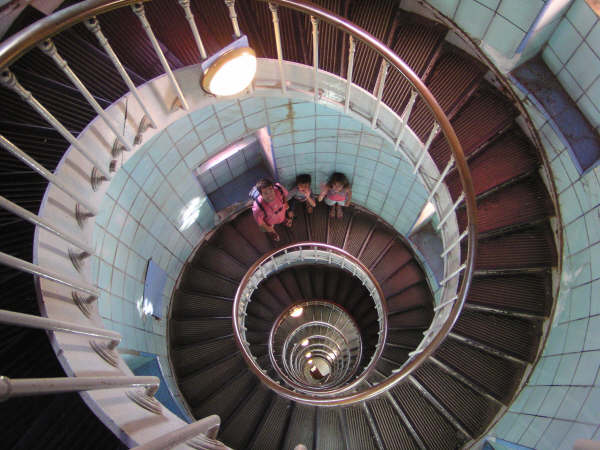 Pour monter dans ces phares, un coeur en bon état est recommandé. Il faut escalader 300 marches pour atteindre le sommet de ce dernier et admirer la Côte Sauvage sur le Golfe de Gascogne.