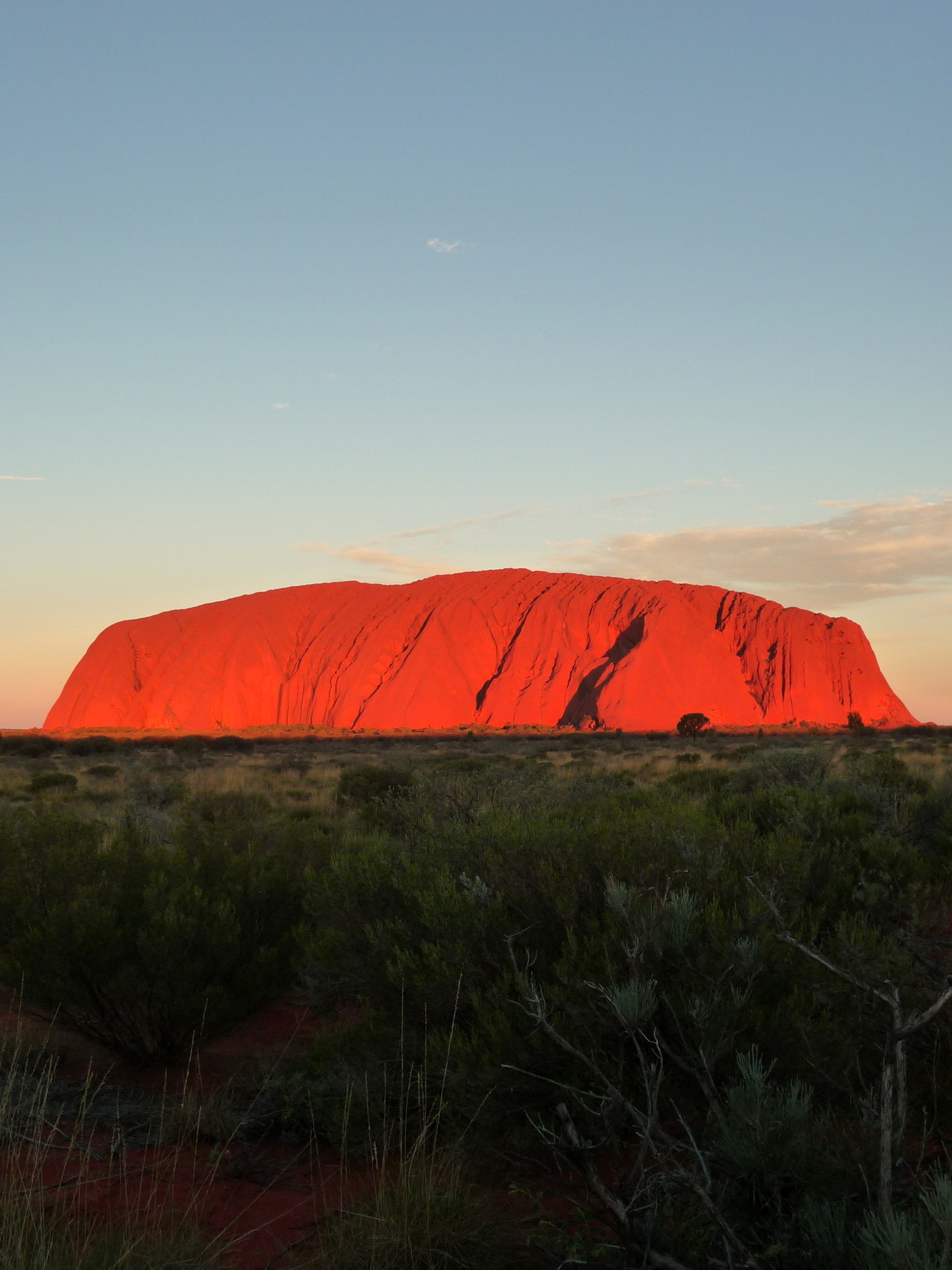 Cette formation de grès haute de 348 m se trouve dans Uluru-Kata Tjuta National Park (MacDonnell Region, Centre Rouge*, Territoire du Nord**, Australie), classé au Patrimoine mondial de l’Unesco et Réserve de biosphère