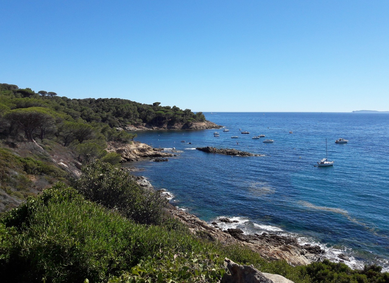 On peut distinguer à l’horizon, l’Ile du Levant (Iles d’Hyères).