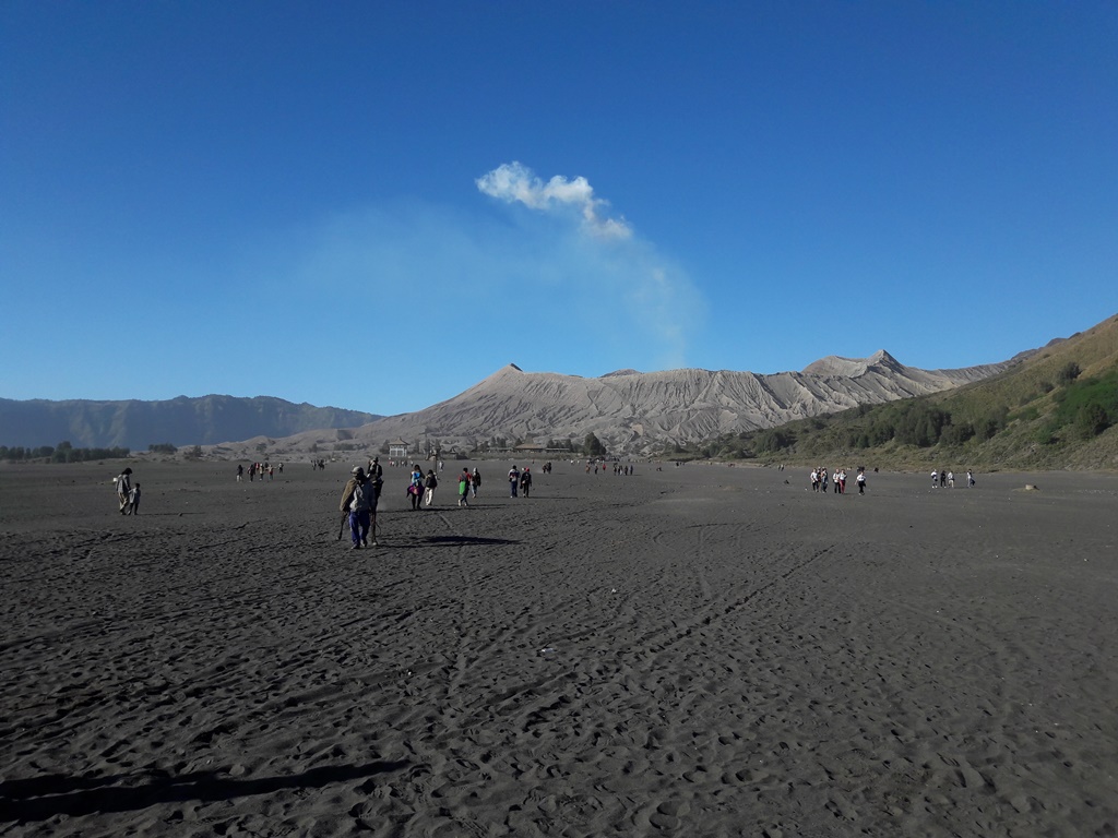 Nous avons ensuite traversé la Mer de sable à contre-sens par rapport au flux des touristes, principalement indonésiens, qui s’apprêtaient, à cette heure-là (aux alentours de 7h30), à gravir les 133 mètres de dénivelé pour atteindre le cratère.