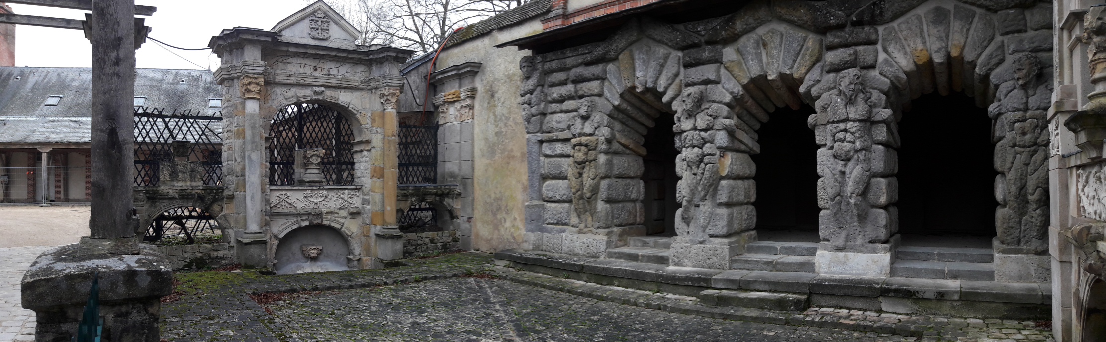 Il a été réaménagé sous Henri IV avec la construction de la Grande Galerie (en arrière-plan) commencée en 1600 qui comprend, au rez-de-chaussée, la Galerie des cerfs et au premier, la Galerie de Diane.