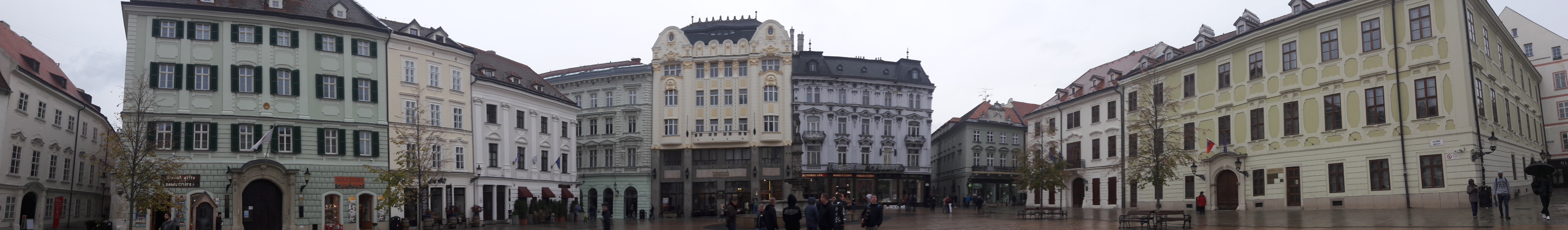 Il donne, à la fois, sur Hlavné námestie et sur Primaciálne námestie, de l’autre côté.