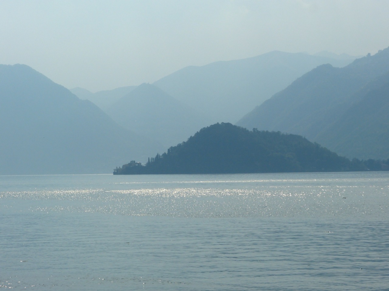 La rive ouest opposée, également entourée des Préalpes Comasques, n’est pas très éloignée et bien visible par beau temps.