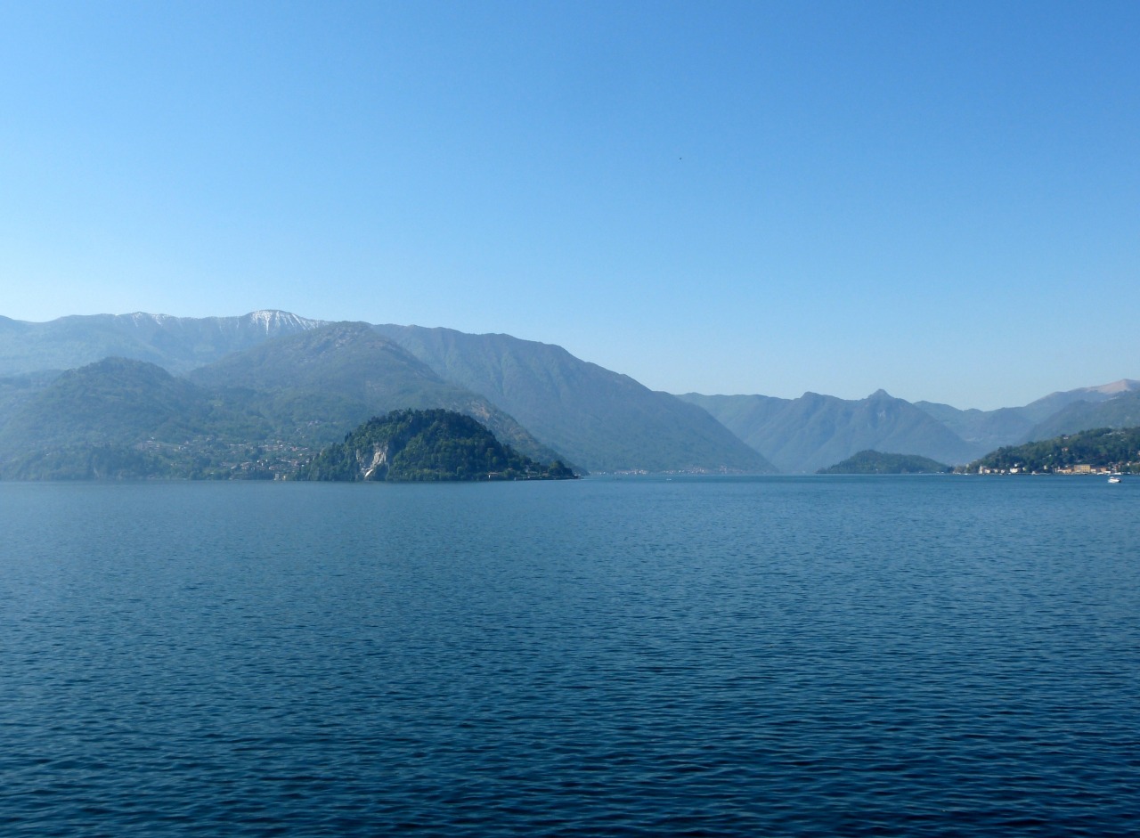 Du côté de cette dernière, se détache à l’horizon la Péninsule de Lavedo (où se trouve la Villa del Balbianello) avec, à sa droite et plus proche, la Villa Carlotta que l’on devine à sa blancheur, et le village de Cadenabbia (Griante).