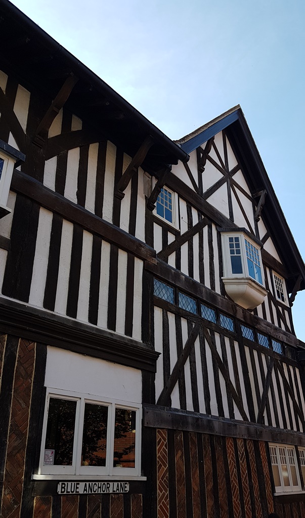 Blue Anchor Lane, qui débouche aux Arcades, était au Moyen-Âge la rue qui permettait d’acheminer les marchandises depuis les quais du port, situés ici, jusqu’à l’intérieur de la cité et au marché de Saint Michael’s Square.