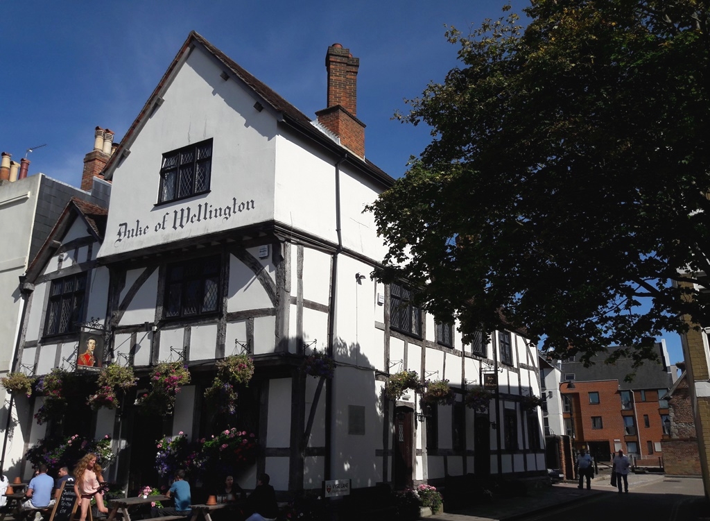 Quant au Duke of Wellington, le pub à l’angle de la place et de Upper Bugle Street, l’origine de la bâtisse date de 1220. Elle fut en partie détruite en 1338 et restaurée plus tard.