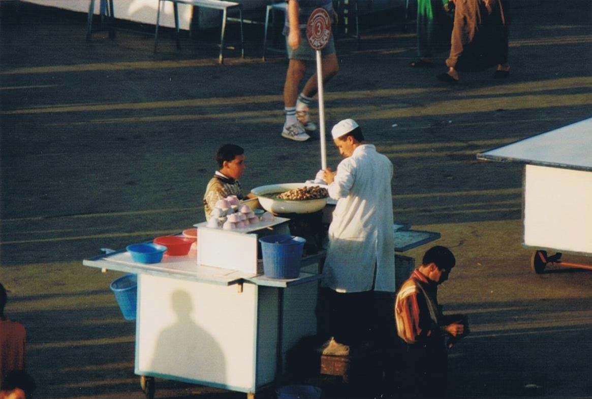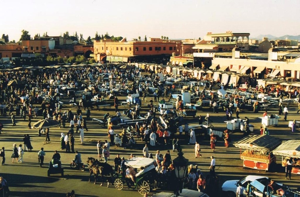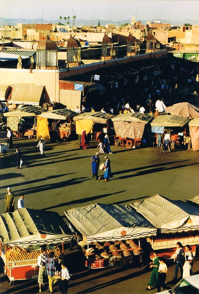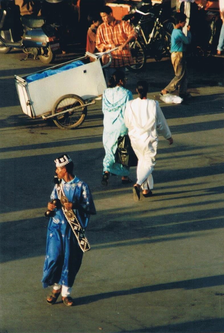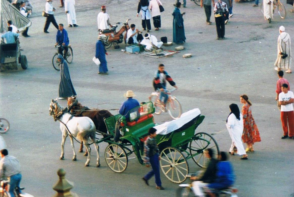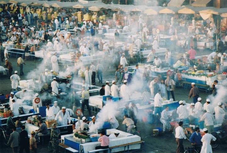 Du matin au soir, la place est occupée par des marchands ambulants, des charmeurs de serpent, des musiciens, et traversée par toute sorte de véhicules…