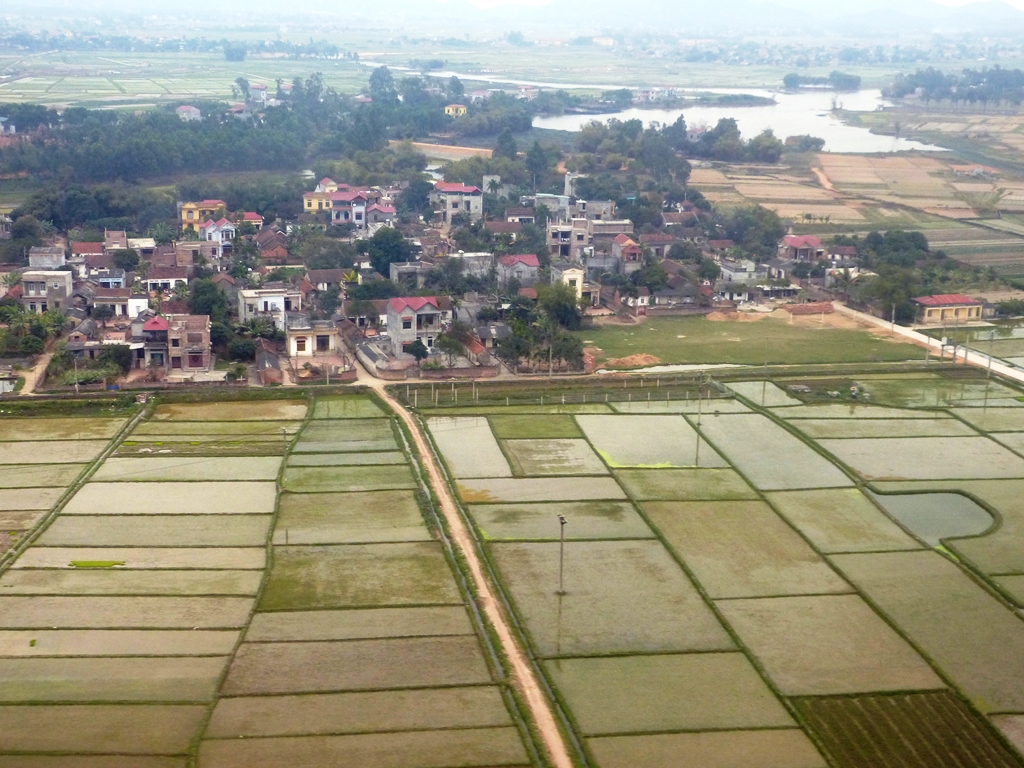Comme dans tout le reste de la région entourant la capitale, les zones urbanisées grignotent petit à petit les rizières.