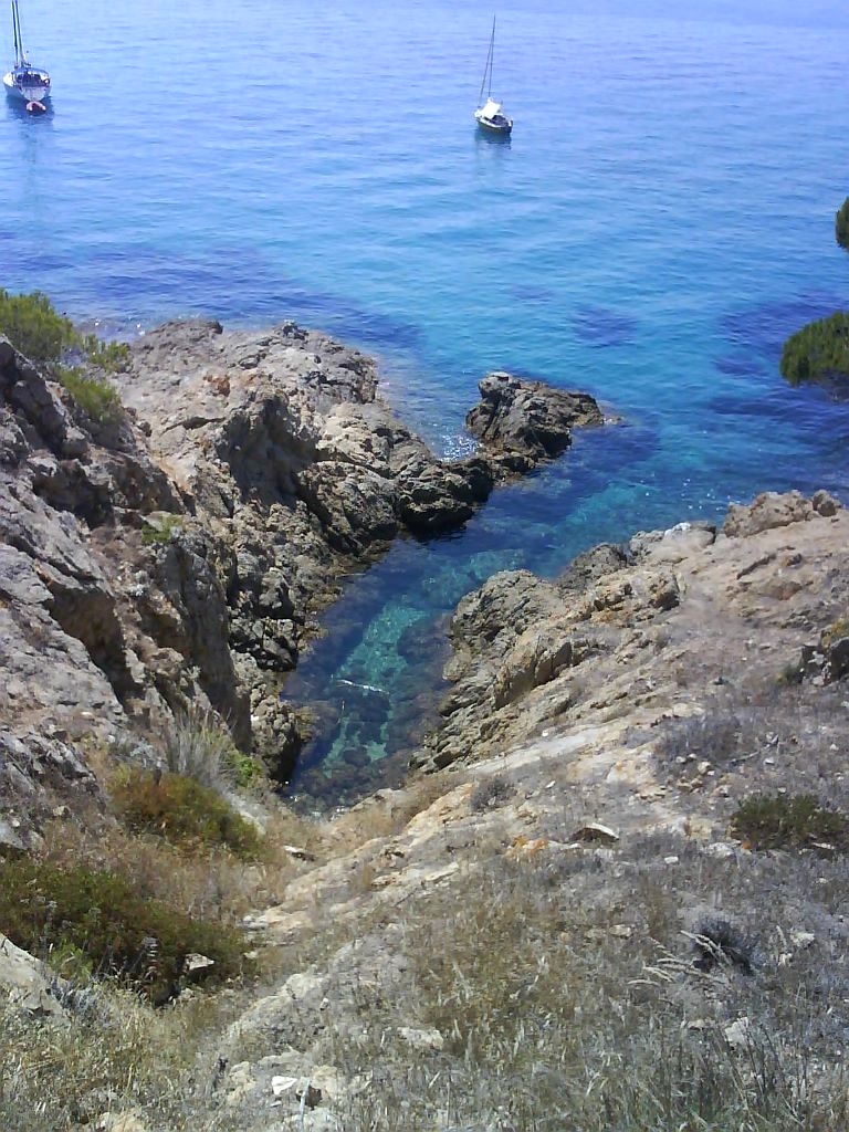Juillet 2008 : les méduses sont de retour, mais elles ne nous ont pas empêché de profiter de l’Ile de Port-Cros et du parc national. Autrefois nommée la Messé (ile du milieu : entre l’Ile de Porquerolles et l’Ile du Levant)**, c’est la plus petite et la plus montagneuse des trois.