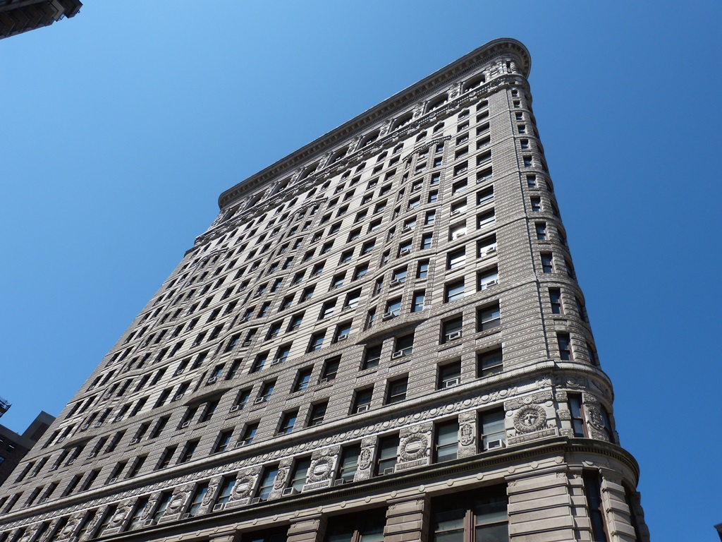 Le Flatiron* Building, inauguré en 1902 sous le nom de Fuller Building, domine du haut de ses 87 mètres la 5ème Avenue (5th Avenue) et Broadway** dans Flatiron District (Midtown Manhattan).