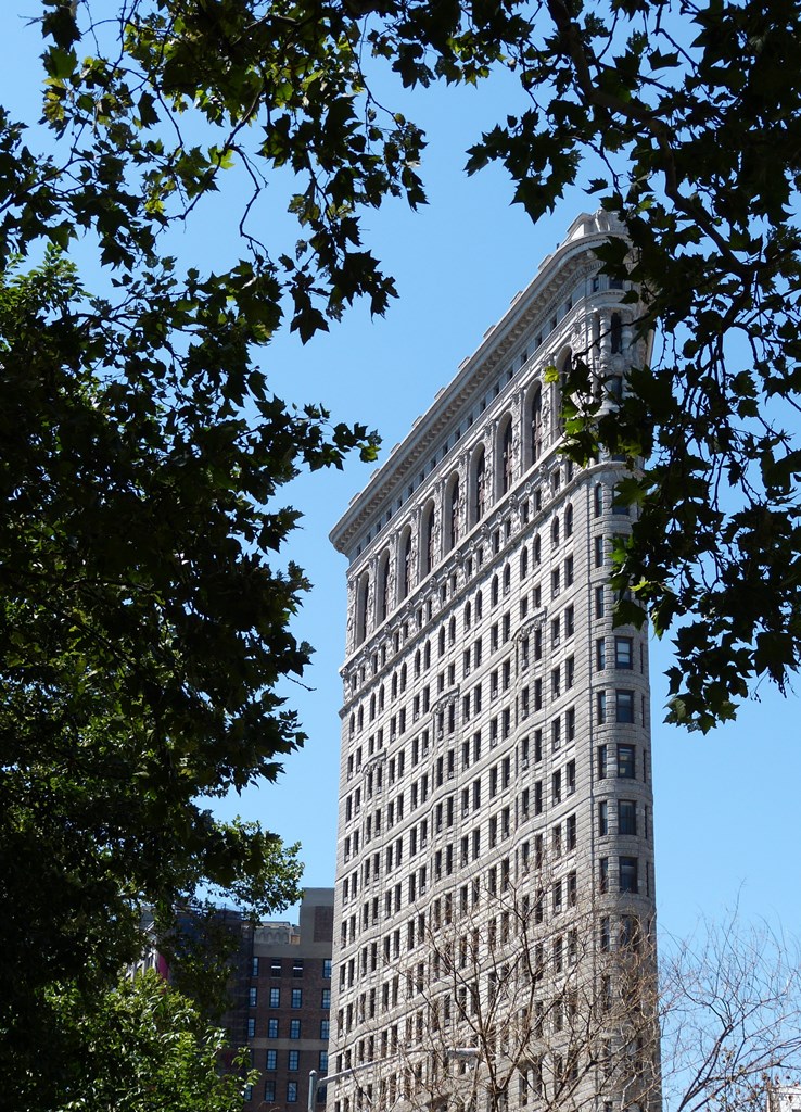 Pour avoir une vue plus dégagée sur cet immeuble de bureaux dessiné par le célèbre architecte américain Daniel Burnham* (1846-1912), il faut aller faire un tour dans le tout proche Madison Square Park.