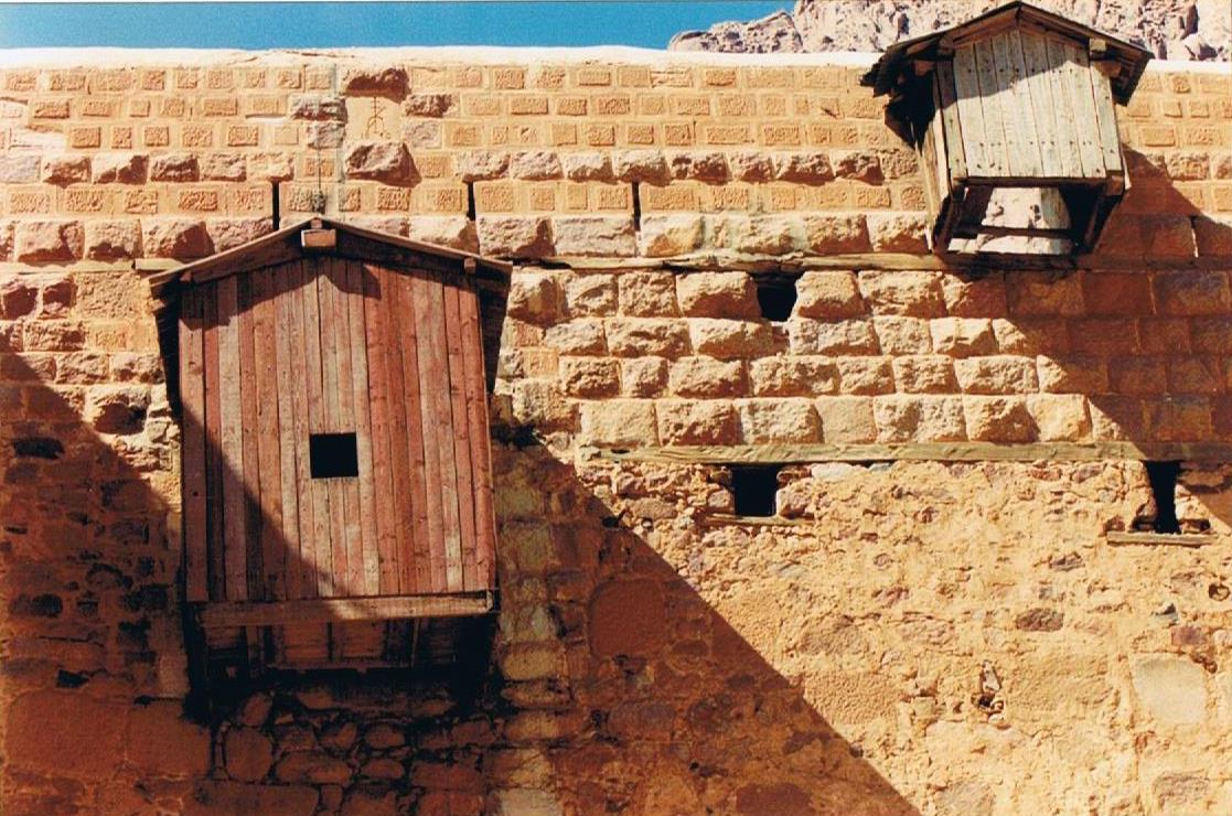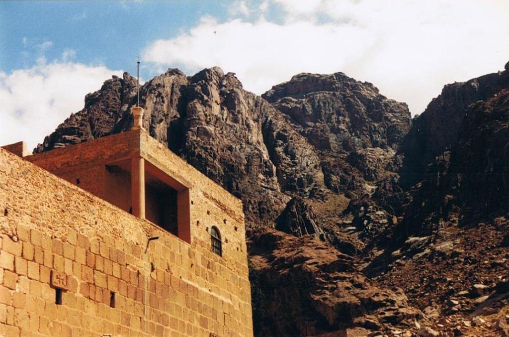 Appelé aussi Monastère de la Transfiguration, Sainte-Catherine du Sinaï a été construit au VIe siècle, sur ordre de l’Empereur Justinien. D’architecture byzantine, il a été bâti autour d’une chapelle élevée deux siècles plus tôt sur ce lieu de pèlerinage chrétien, à l’emplacement où Moïse aurait vu l’ange de Yhwh* dans les flammes du Buisson ardent (ce dernier, pourtant, ne se consumait pas).