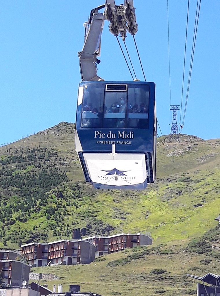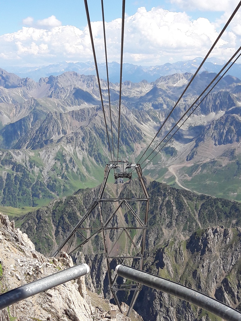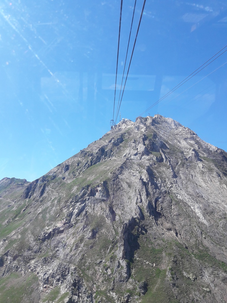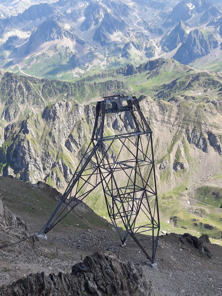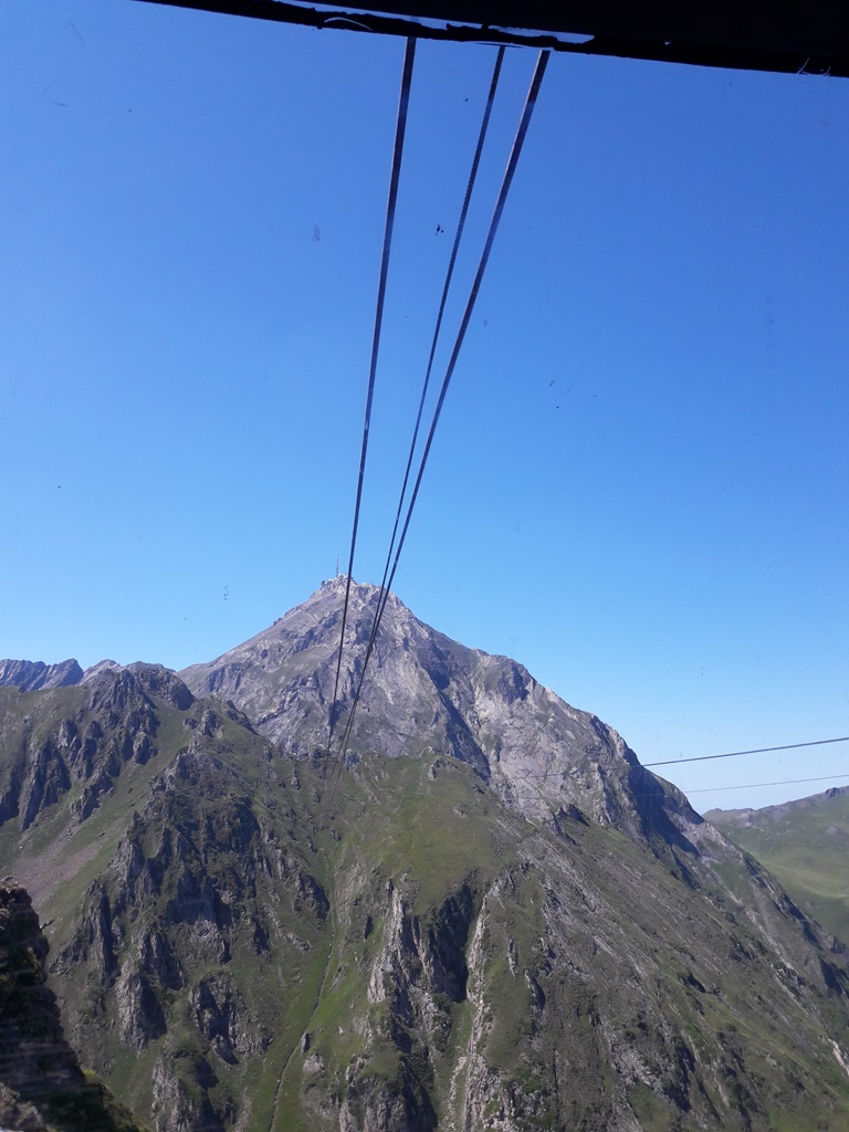 Des cabines et des gares du téléphérique (on change de cabine à 2341 m d’altitude au Taoulet), les vues plongeantes sur la montagne alentour, la Chaine des Pyrénées et le Lac d’Oncet (2254 m) en contrebas, du côté de Sers, sont vertigineuses, au sens propre !
