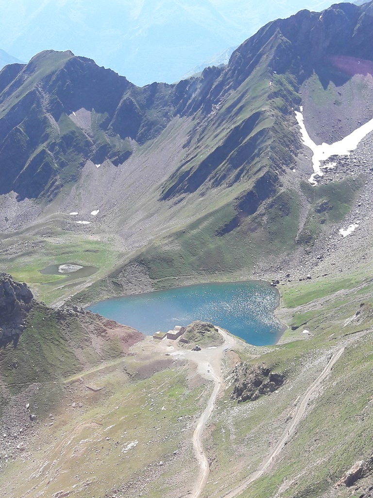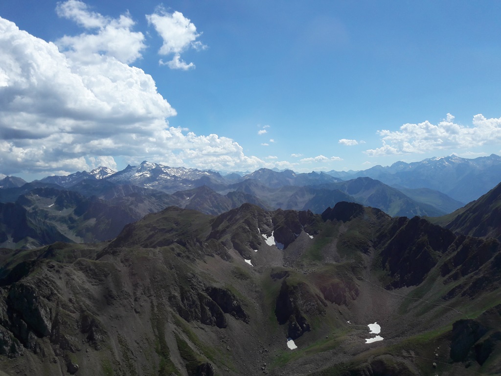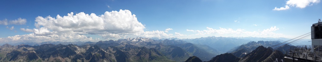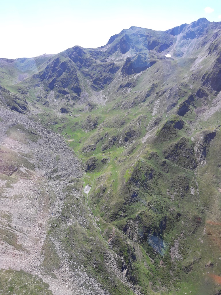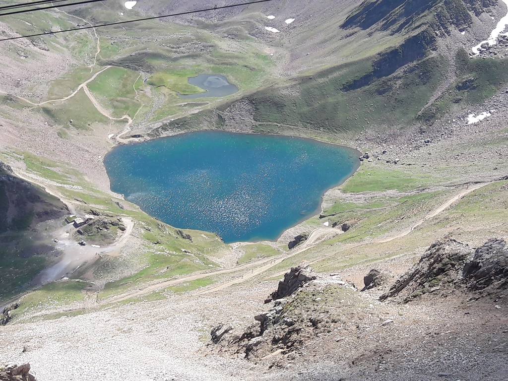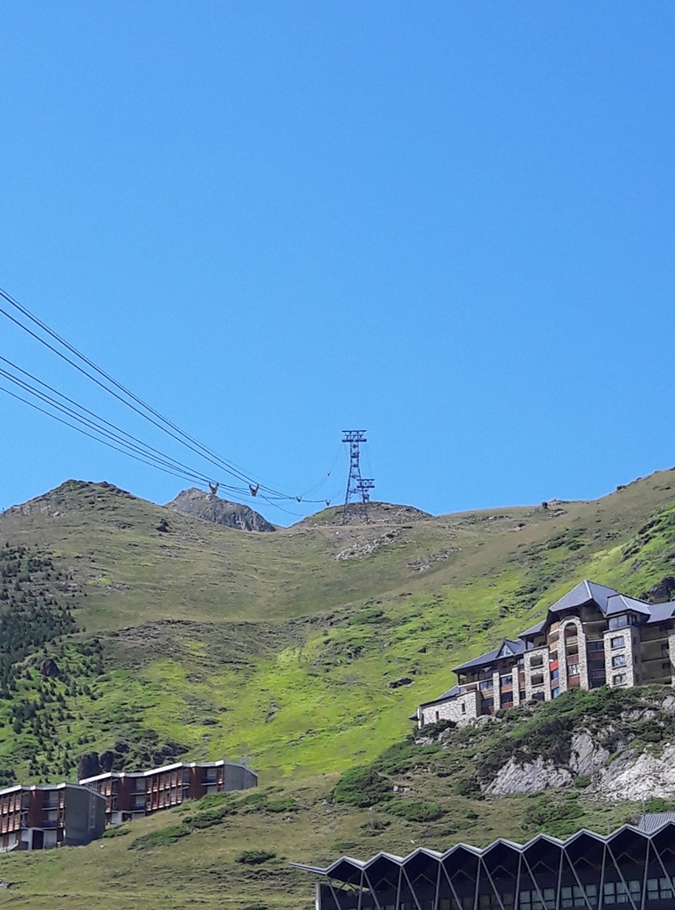 Des cabines et des gares du téléphérique (on change de cabine à 2341 m d’altitude au Taoulet), les vues plongeantes sur la montagne alentour, la Chaine des Pyrénées et le Lac d’Oncet (2254 m) en contrebas, du côté de Sers, sont vertigineuses, au sens propre !