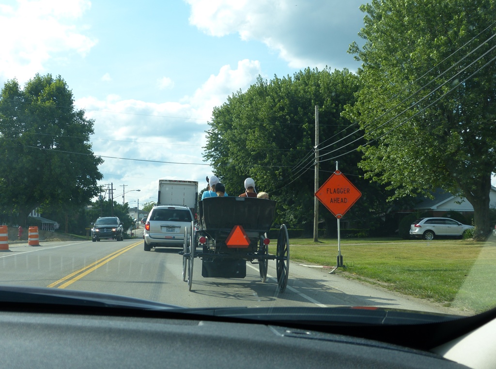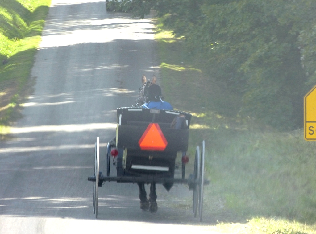 Les routes sont empruntées par le moyen de transport principal des Amish : le buggy. Il est un symbole d’un rythme de vie plus lent et d’une plus grande dépendance à l’égard de la communauté. Même si la conduite d’un véhicule à moteur est autorisée, leur possession est en revanche interdite.