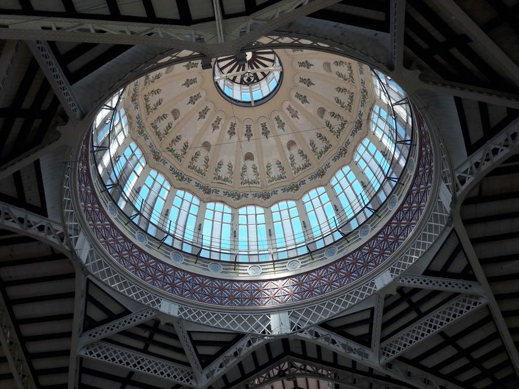 Son architecture de style moderniste issu de l’Art Nouveau valencien est composée de fer, de bois, de céramique et de carreaux polychromes. Sa coupole centrale atteint 30 mètres de haut.