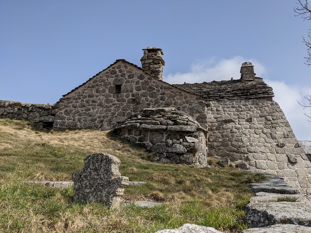 Les lieux sont déserts en hiver. Seuls les ancêtres disparus veillent sur les beaux et austères bâtiments aux murs de granite et aux toits en lauze* de l’ancienne ferme des Bouzèdes.