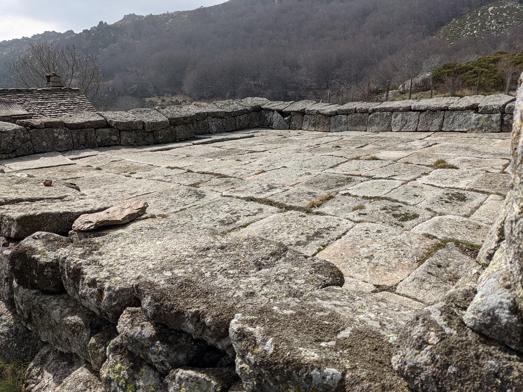 Tout d’abord, l’aire caladée de battage des céréales qui étaient produites sur place : on y faisait sécher les gerbes qui venaient d’être coupées.