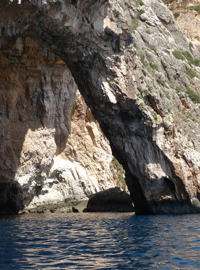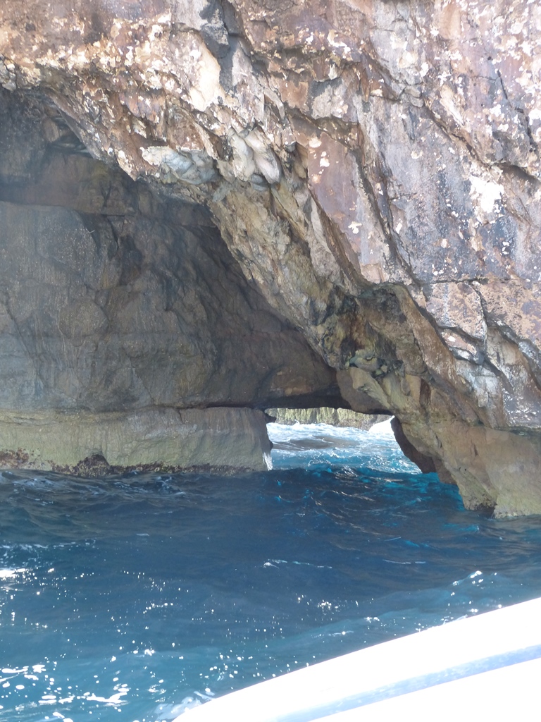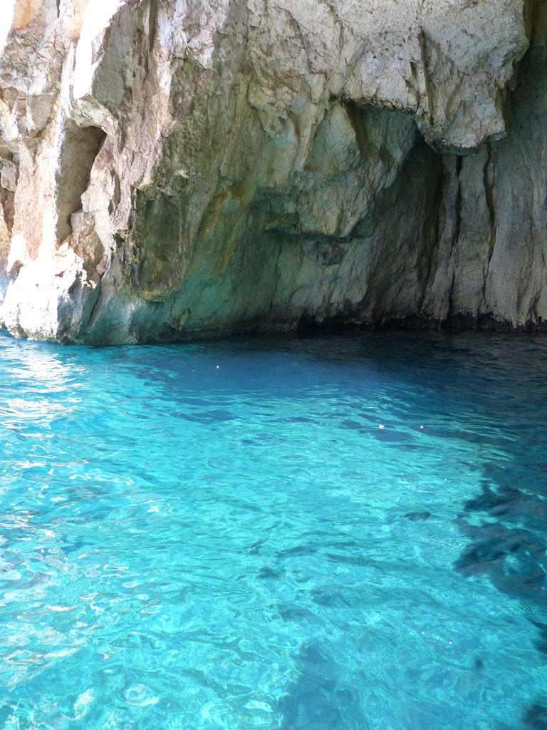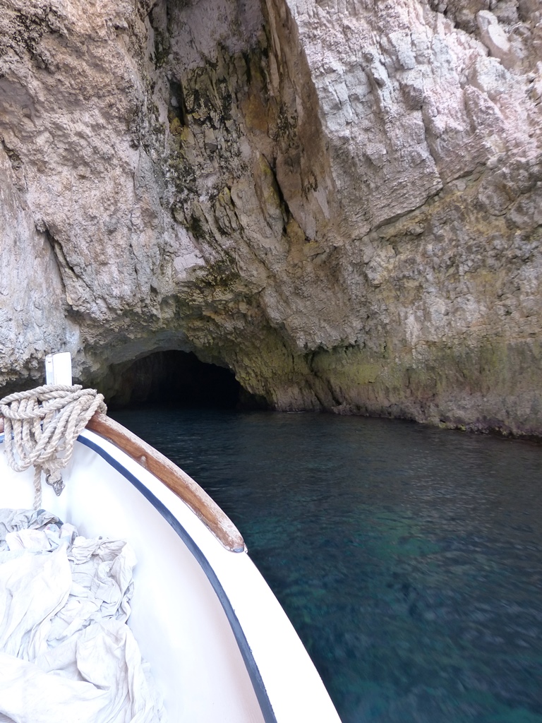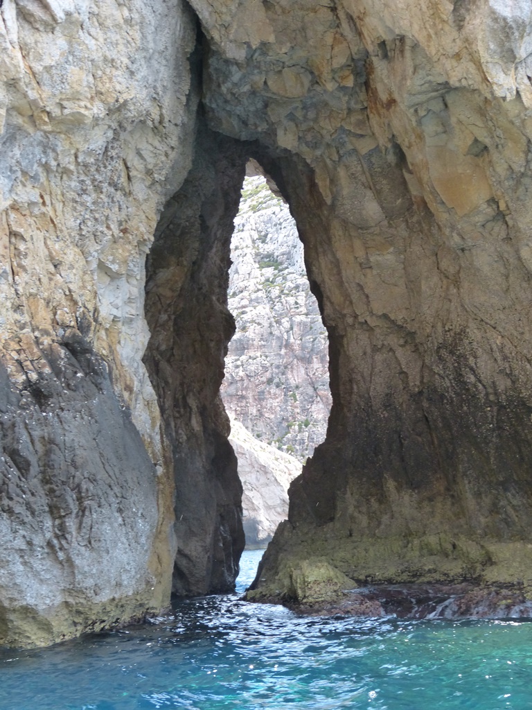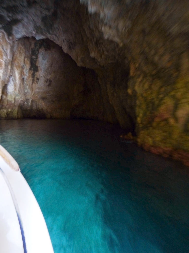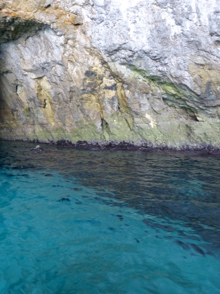 … avant d’atteindre la Grotte Bleue proprement dite, une arche voûtée longue de 43 mètres et qui plonge sous la mer jusqu’à 40 mètres …