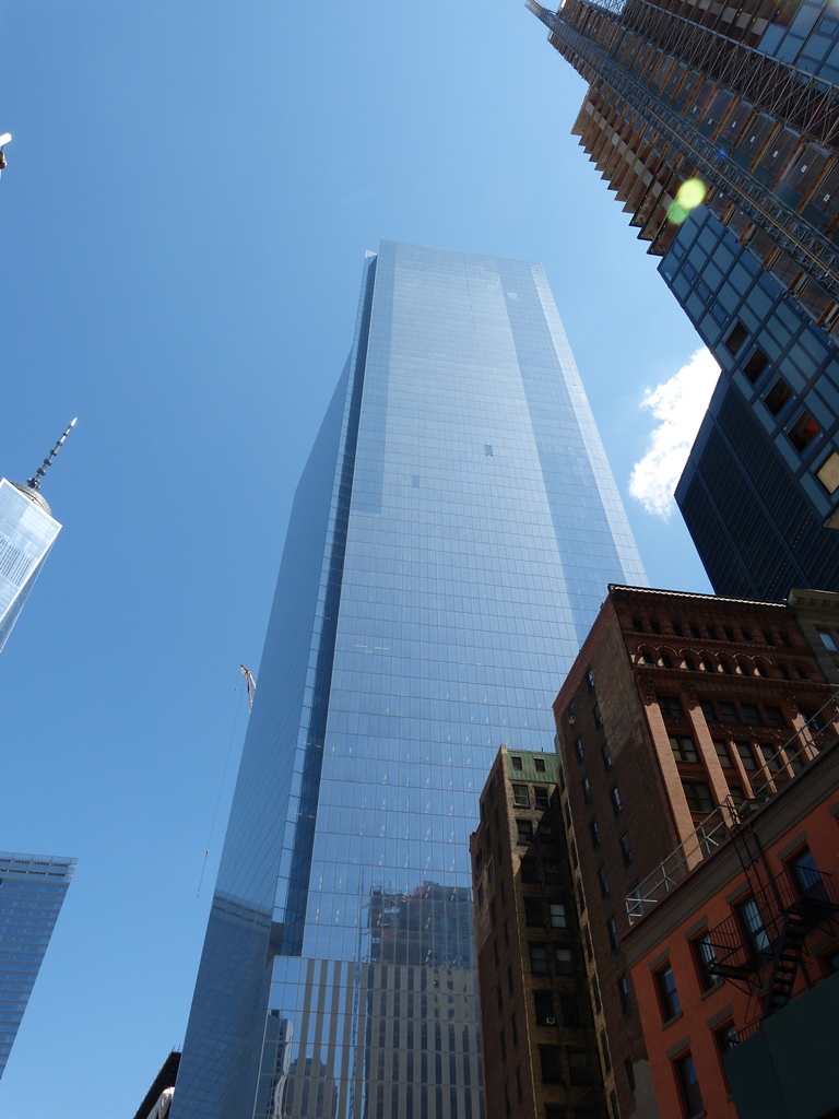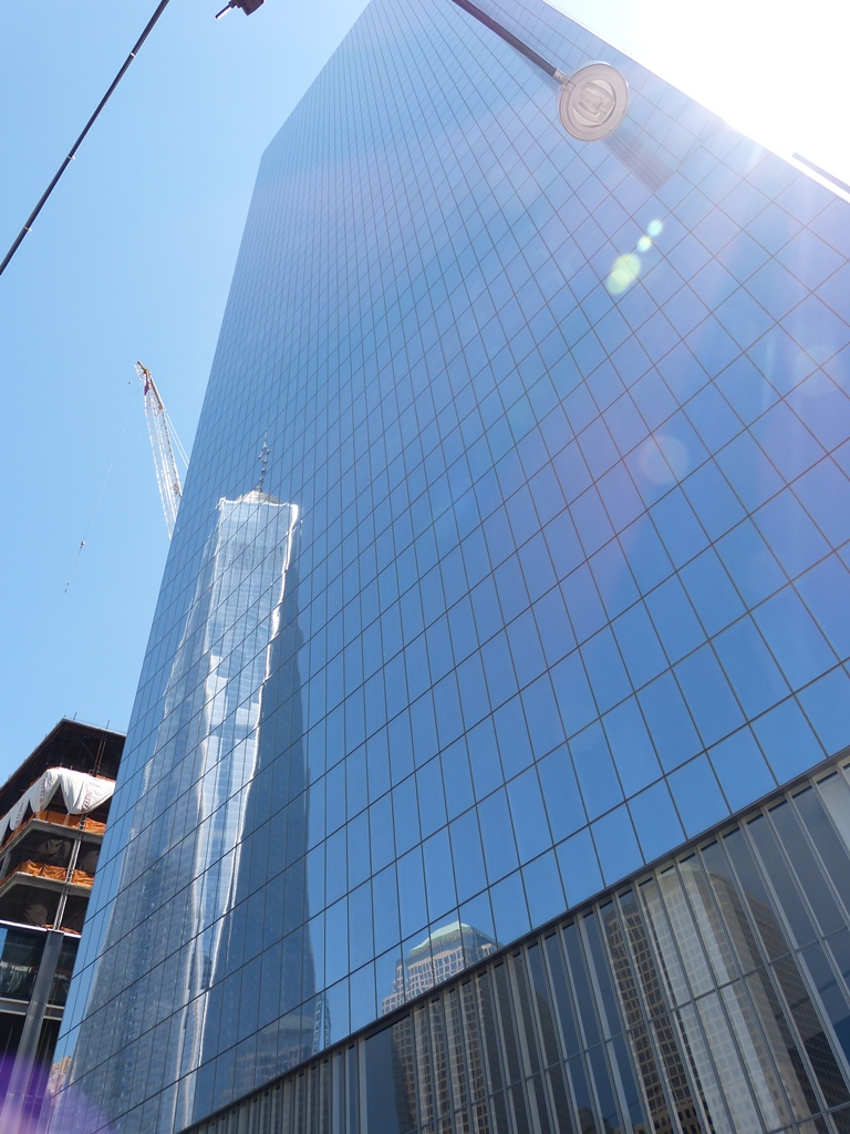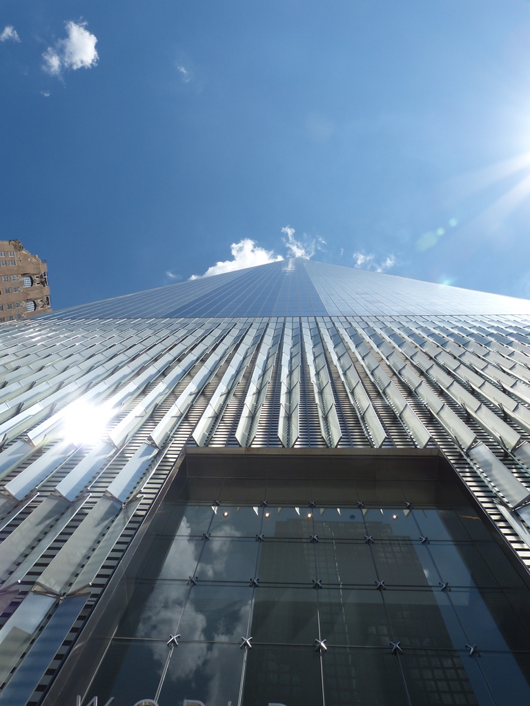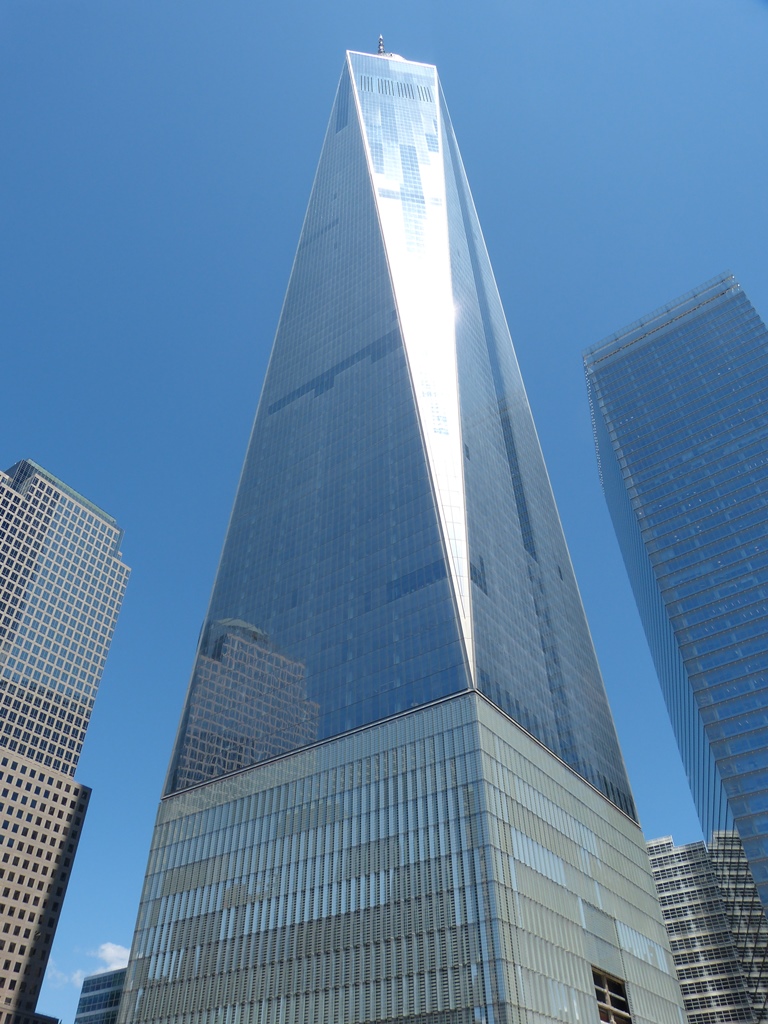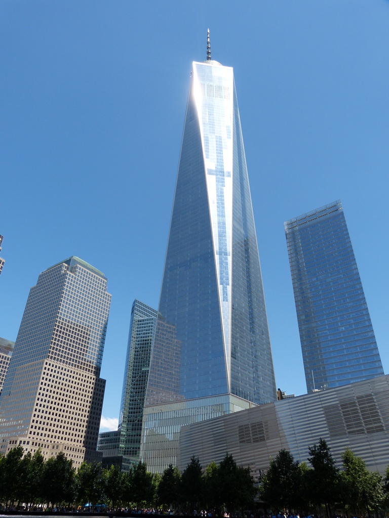 Le One World Trade Center (2006-2013) qui remplace les tours jumelles est le plus haut building de New-York. Il comprend 108 étages. (A sa droite se situe le 7WCT et en contrebas le hall d’accueil du musée)