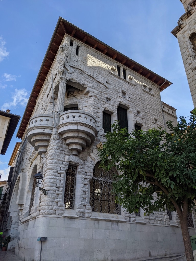 Joan Rubió Bellver est également le concepteur de la façade de la Banc de Soller (aujourd’hui une succursale de la Banco de Santander) édifiée en 1912 à côté de Sant Bartolomeu.