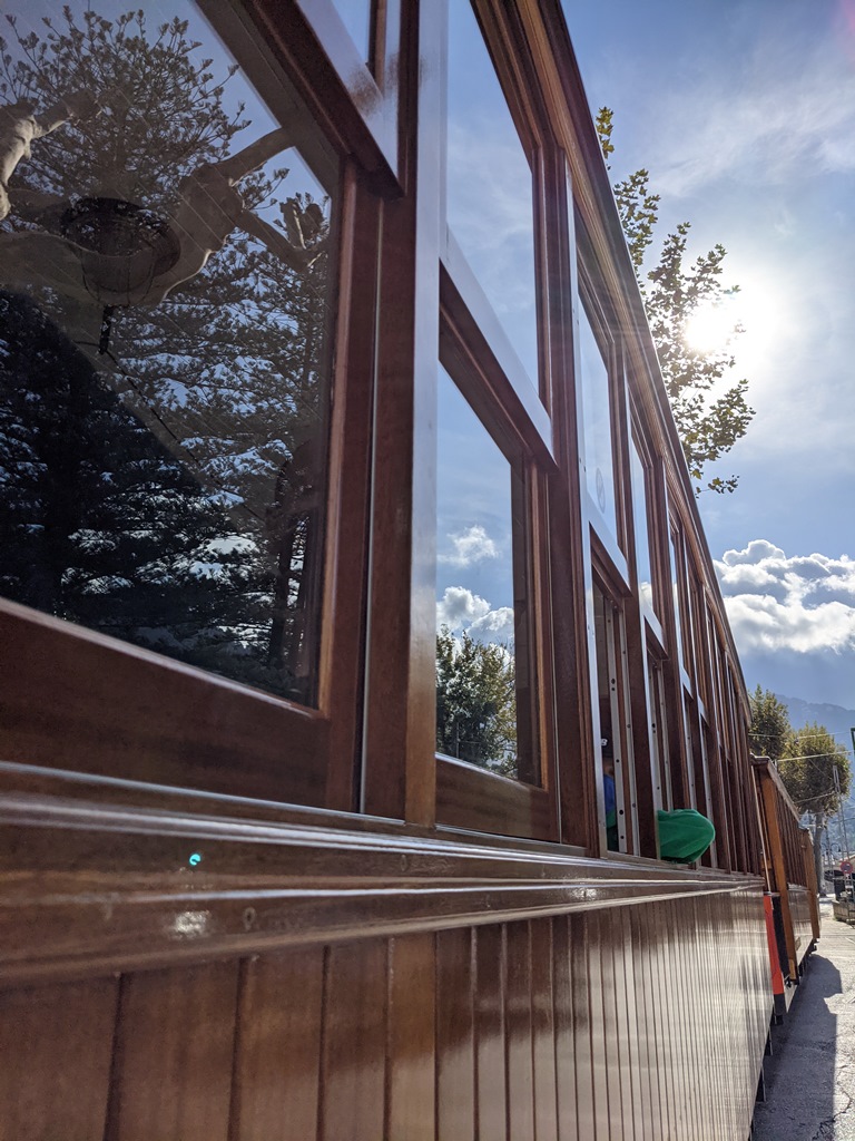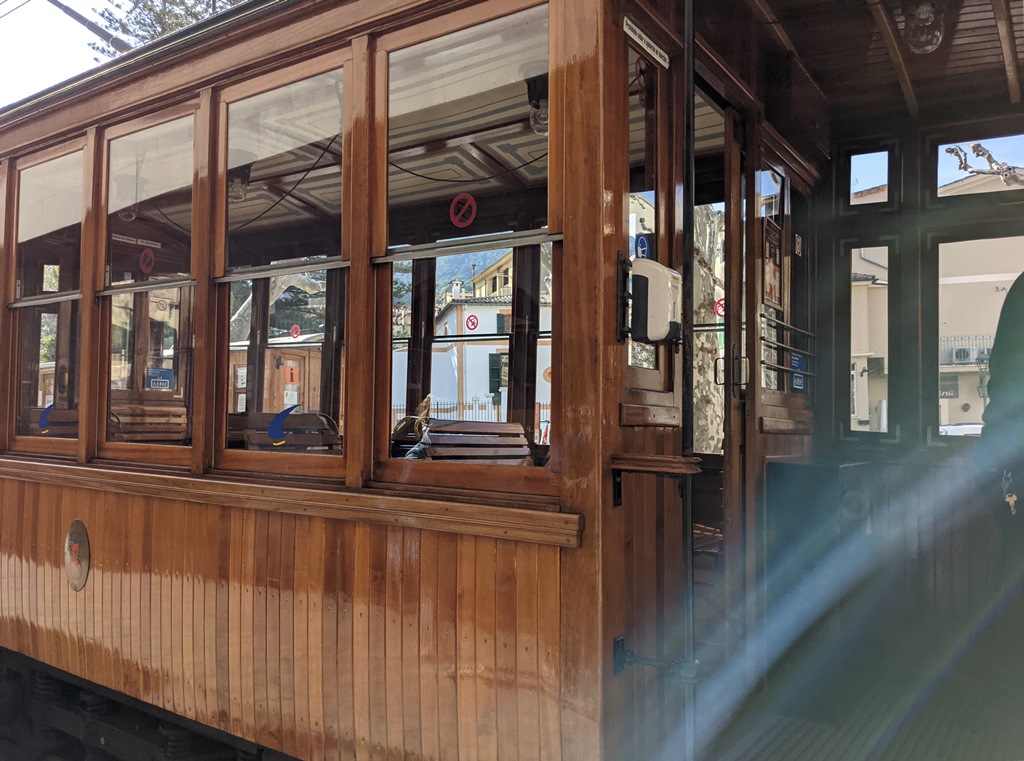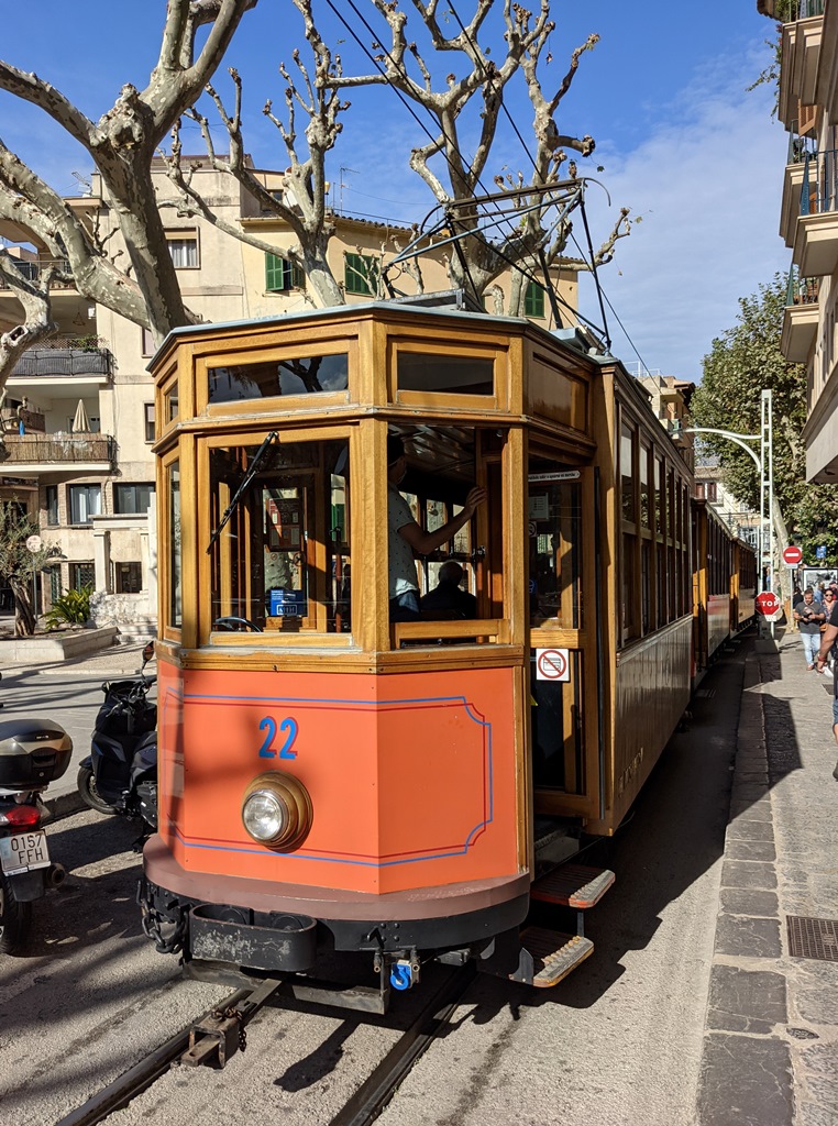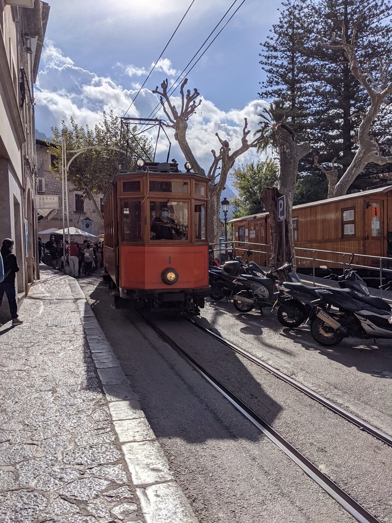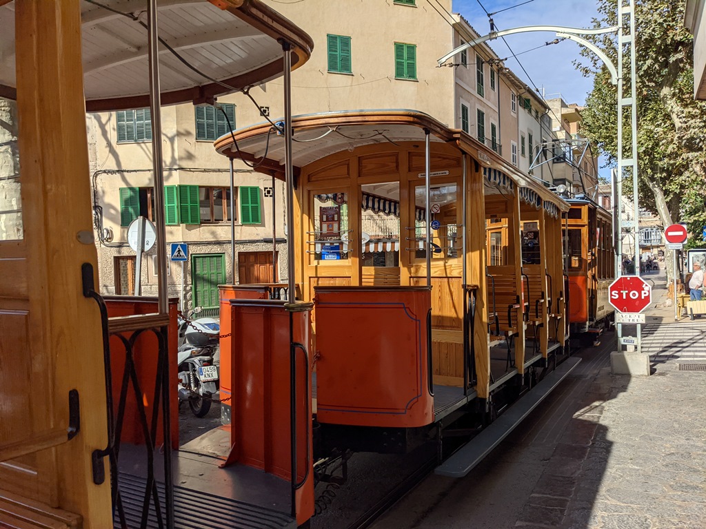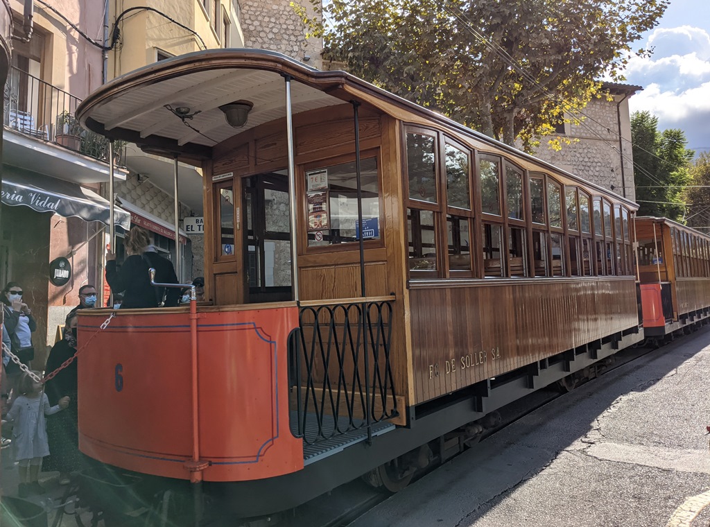 Familièrement appelé éclair rouge, le premier tramway* électrique de l’ile, inauguré en 1913, dispose d’une ligne unique qui relie le centre de la ville au Port de Sóller.