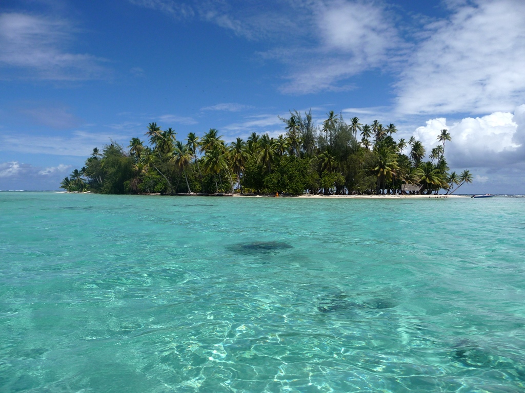 Vers le nord s’étend le lagon délimité par de nombreux autres motus.