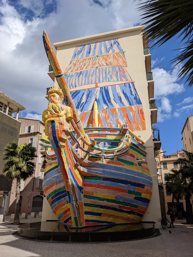 Dans la Basse-Ville de Toulon, Place Vatel, le « bateau sculpture » est une réplique de la proue de la frégate « la Flore » qui était basée à Toulon au XVIIIe siècle.