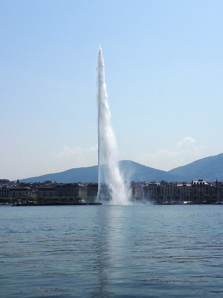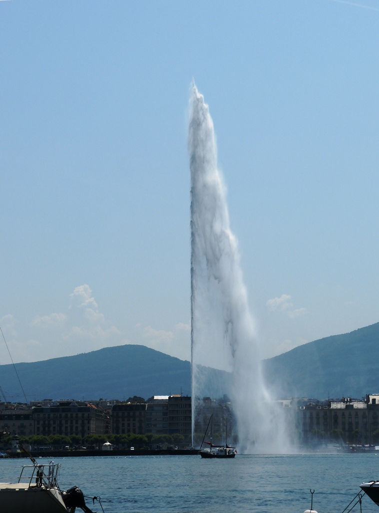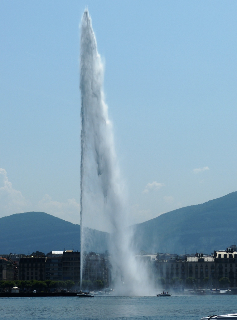 La Rade de Genève, qui ferme l’extrémité sud du Lac Léman* dans le Canton de Génève**, est célèbre pour son jet d’eau, emblème de la ville, qui s’élève à 140 mètres de hauteur et pour ses cygnes