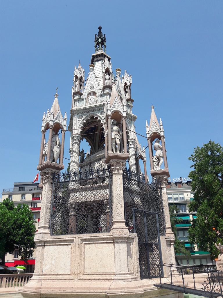 En descendant le quai, on arrive au Jardin des Alpes où s’élève le Monument Brunswick (fin XIXe), un mausolée de style néogothique en marbre de Carrare et pierre de Vérone, réplique historique de celui des Scaligeri de Vérone, dédié au Duc de Brunswick Charles d’Este-Guelph qui avait légué sa fortune à la ville.